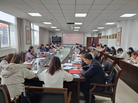 5月16日上午,我校在行政楼501会议室召开2023年上半年第2次教学工作例会,全面总结、深入剖析前一阶段教学工作,共同研究、重点谋划下一阶段目标任务。学校党委副书记、院长杨静,党委委员、副院长邓朝晖、陈嬝嬝出席会议,五系三部主任、副主任、教学科研科科长、教研室主任,职教中心主任,教务处全体成员参加会议。会议由邓朝晖主持。