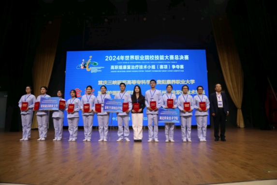 2024年世界职业院校技能大赛总决赛医药卫生赛道康复治疗技术小组(赛项)争夺赛,于10月28日至31日在湖北职业技术学院举行,学校临床与康复学院学生喜获金奖。来自全国29个省、自治区、直辖市的58支参赛队伍同台竞技,经过激烈角逐,由学校临床与康复学院教师黄璐玥、覃小霞指导的谢媛羽、刘培卓、张开琴、杨灿灿团队,凭借扎实的专业知识、精湛的操作技能和出色的团队协作能力荣获金奖。这是临床与康复学院继去年获得全国职业院校技能大赛二等奖后取得的新突破。