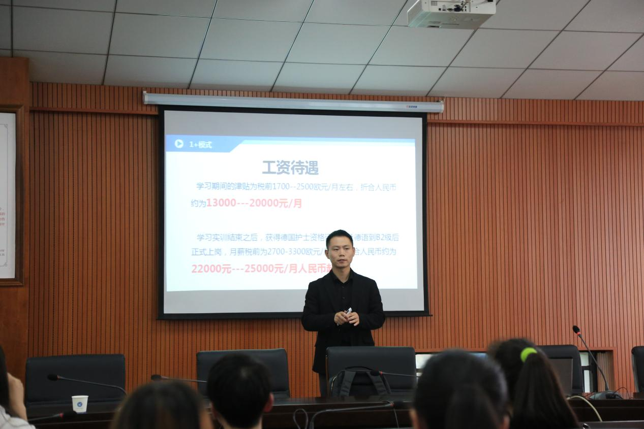 本次活动得到德国库联集团、歌德华夏(北京)国际人才交流有限公司的大力支持。活动上,德国库联集团德国区总经理Lars Speckemeier和歌德华夏(北京)国际人才交流有限公司西南地区总监黄浩刚分别围绕中德护理人才交流基本情况、企业文化、项目模式;宣讲会上,同学们针对关注的薪资待遇、德语培训、发展前景等方面提问,国库联集团、歌德华夏(北京)国际人才交流有限公司为同学们提供了详细的解答。活动中,企业代表还分享了中国学生在德国的工作和生活经历,鼓励同学们选择到更广阔的就业平台,开启人生新篇章。