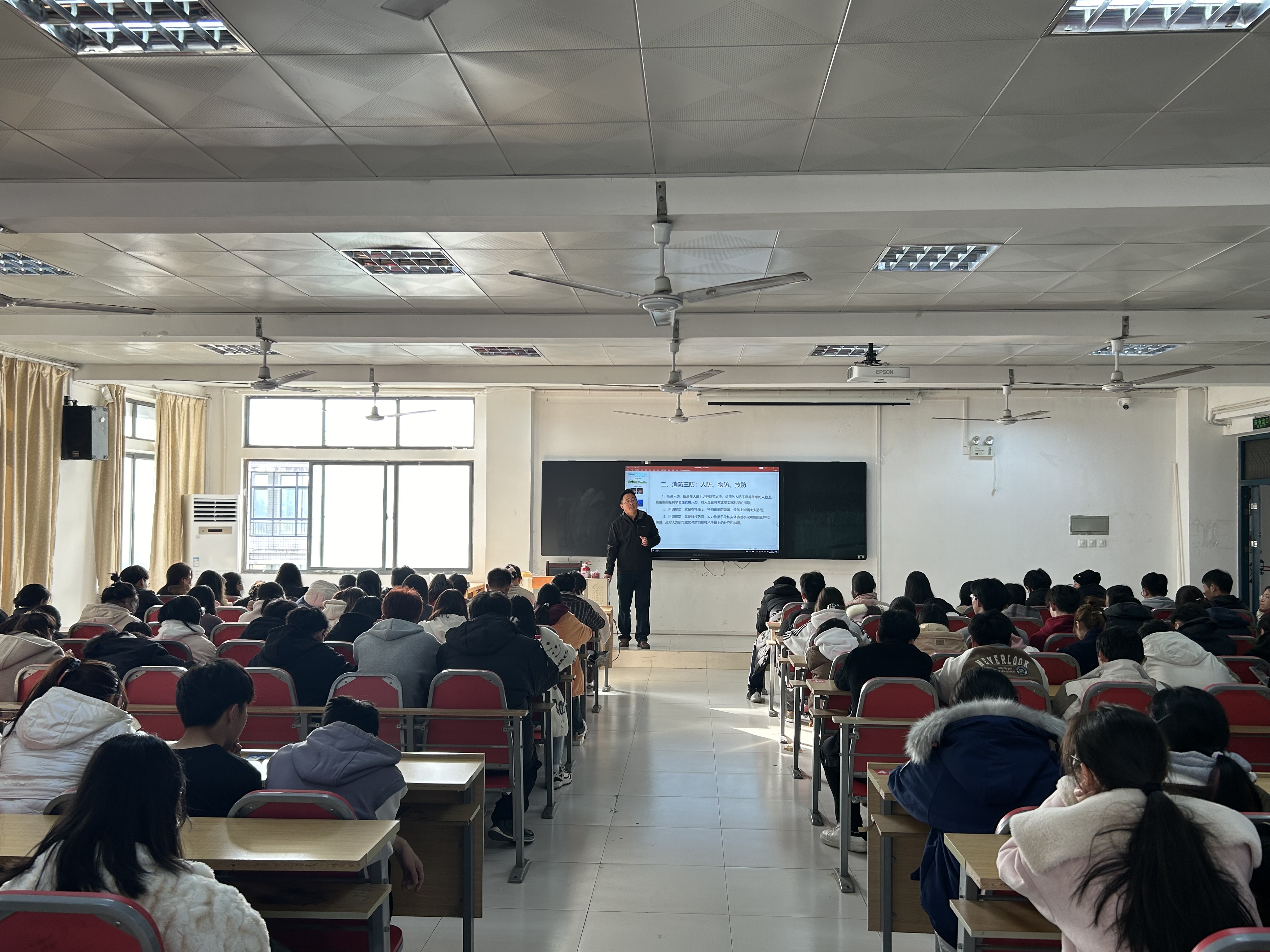 活动邀请校消防科科长吴长城给同学们做了一场精彩的讲座。吴科长结合近几年火灾的典型案例,向同学们详细讲解了如何正确预防火灾、如何使用消防设施、进行火灾报警及高层建筑发生火灾的预防和逃生技能等,让同学们受益匪浅。