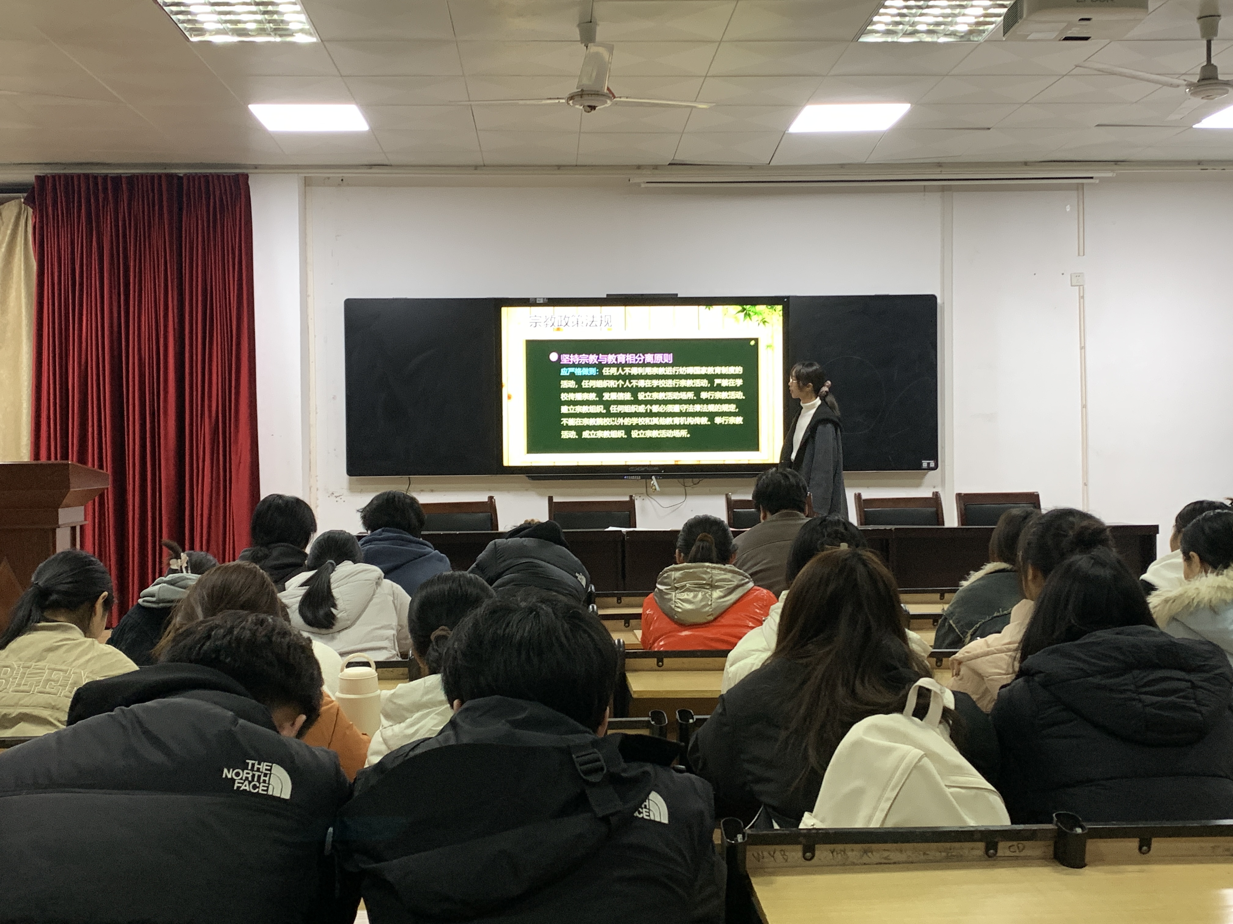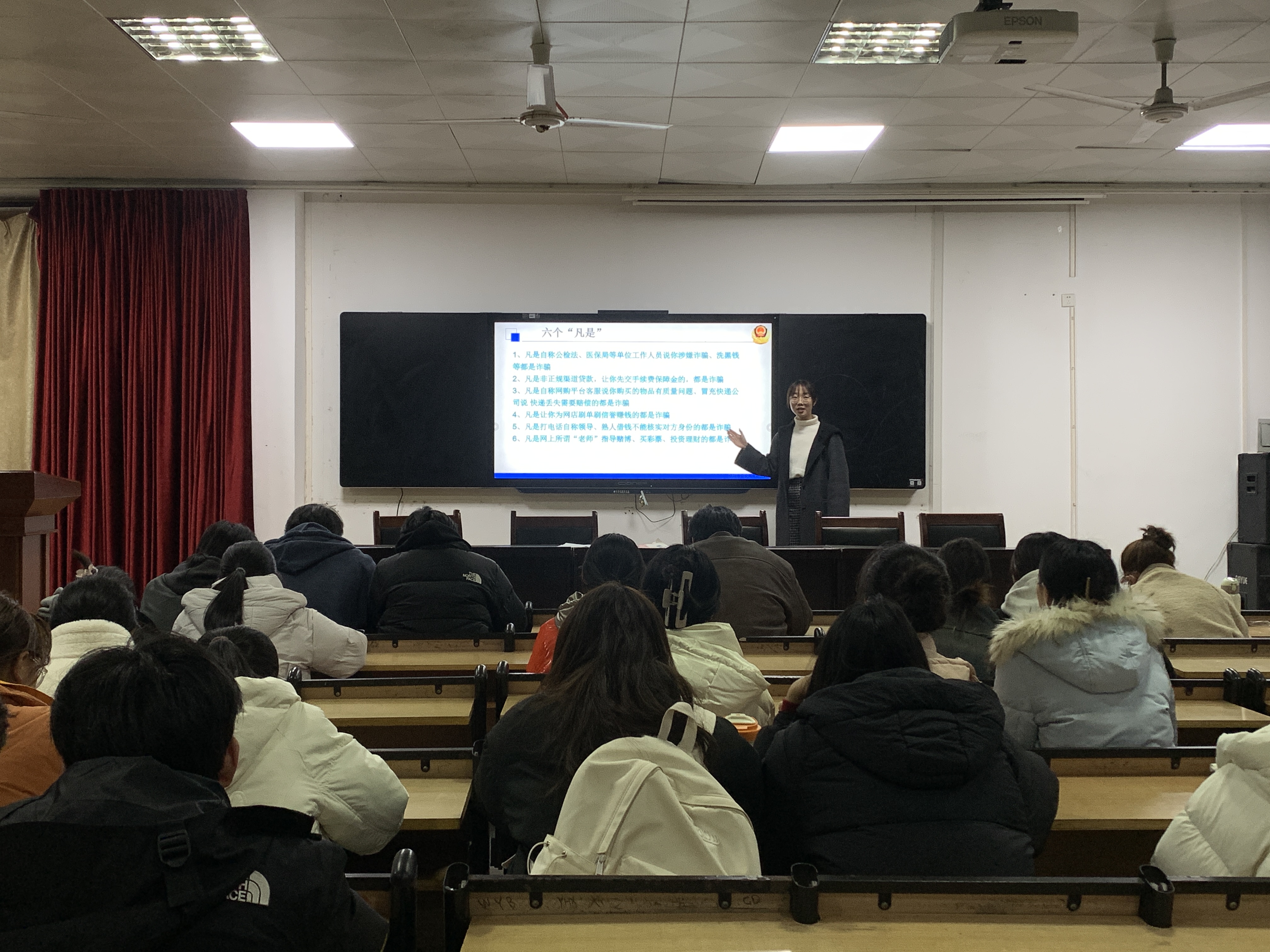 班会的开始,辅导员们在各班对全体同学表达了新学期的期望和祝福。接着,辅导员们围绕宿舍安全、防诈防骗、网络安全、出行安全、正确认识宗教信仰等方面对同学们进行引导,对班风学风建设进行了具体的要求和安排。辅导员们特别在“开学第一课”中从日常用电安全和消防安全等多个角度对学生进行安全教育。
