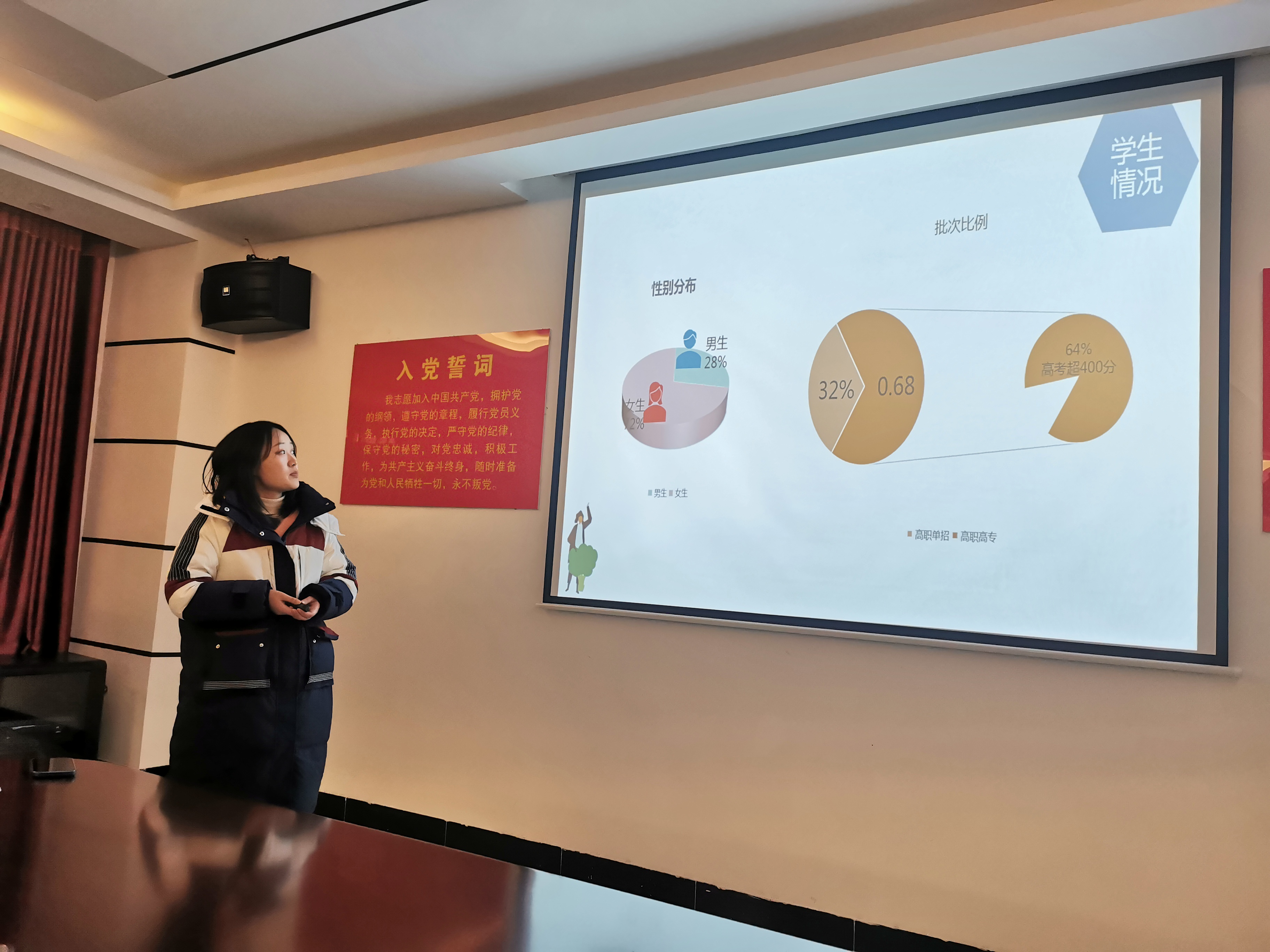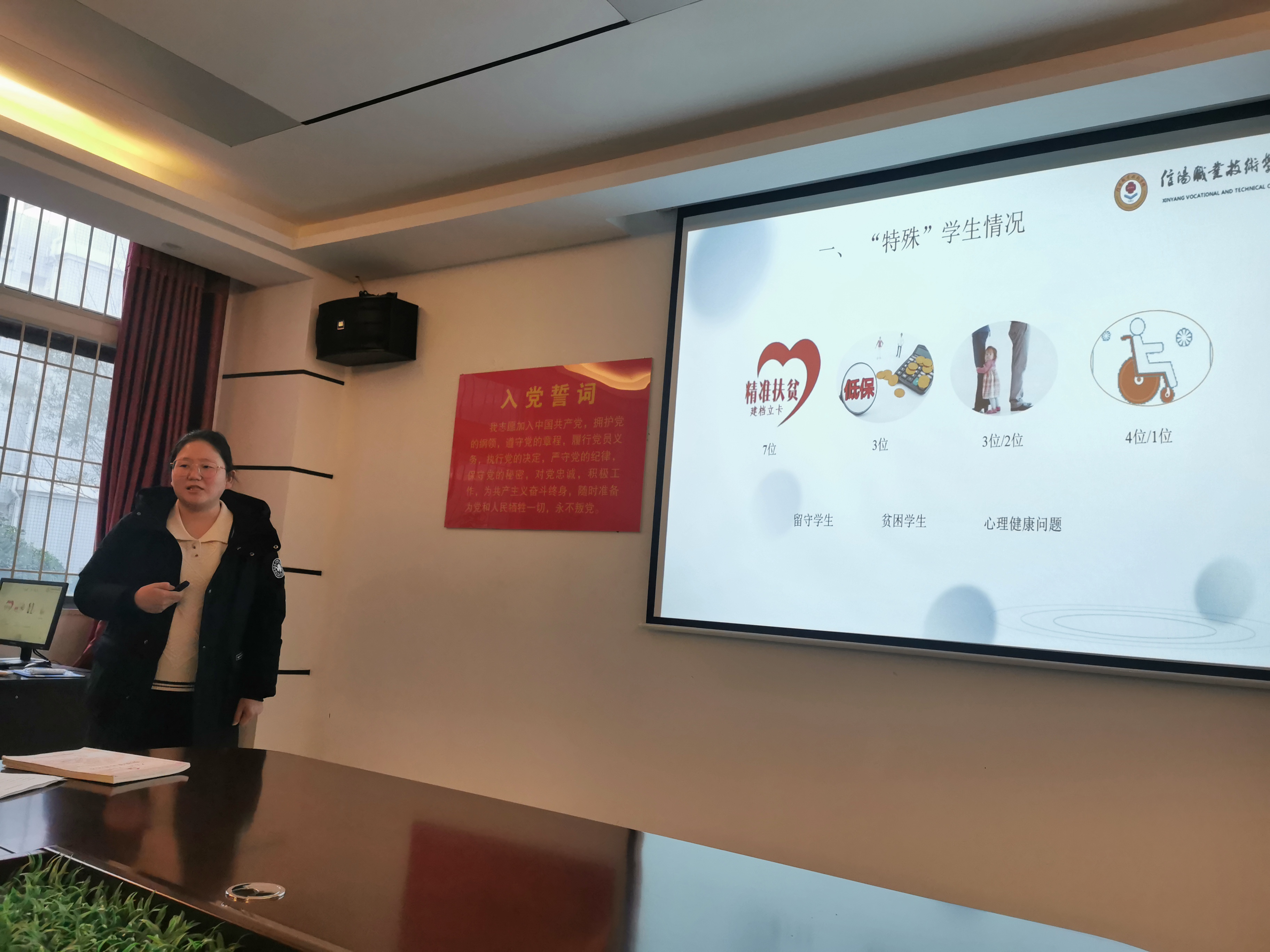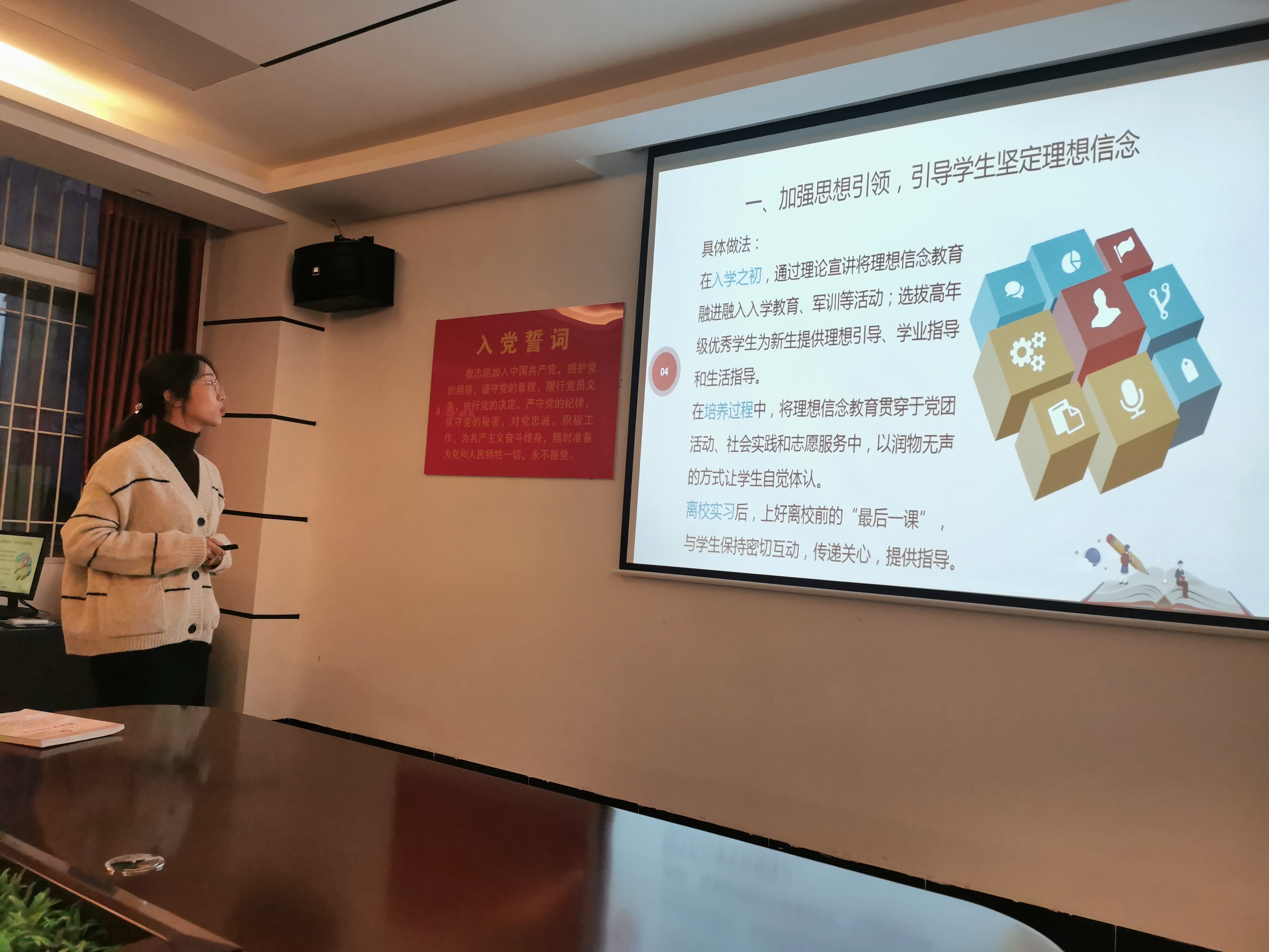 首先,辅导员采取抽签的形式按顺序进行展示汇报,对所带班级基本情况、班级建设中经验做法、取得成效、存在问题及改进措施等进行展示。随后,辅导员老师就参会领导随机抽取的学生名单,回答学生的基本情况。