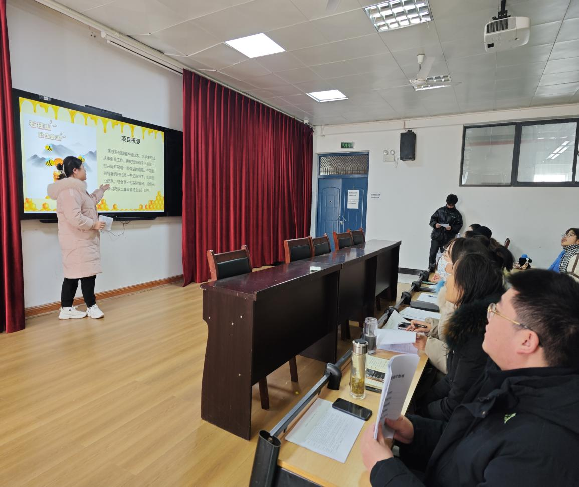 经过前期同学们的积极备赛和老师的专业指导,共推选出7支参赛队伍参加本次比赛。本次比赛共分三个阶段:各参赛选手项目展示、评委提问、选手答辩。7支参赛队伍按赛前抽签结果从项目背景、项目内容、市场分析、营销策略、财务预测、风险评估、发展规划等方面作展示汇报,参赛项目涉及知识领域广泛、想法新颖。评委老师依据参赛团队的项目计划书质量及路演展示情况进行考评打分。经过激烈地角逐,来自22级中药学2班郝然团队《唐河原生态土蜂蜜养殖》项目脱颖而出,获得一等奖。最后,根据团队最终成绩推选出三个团队参加校级比赛。