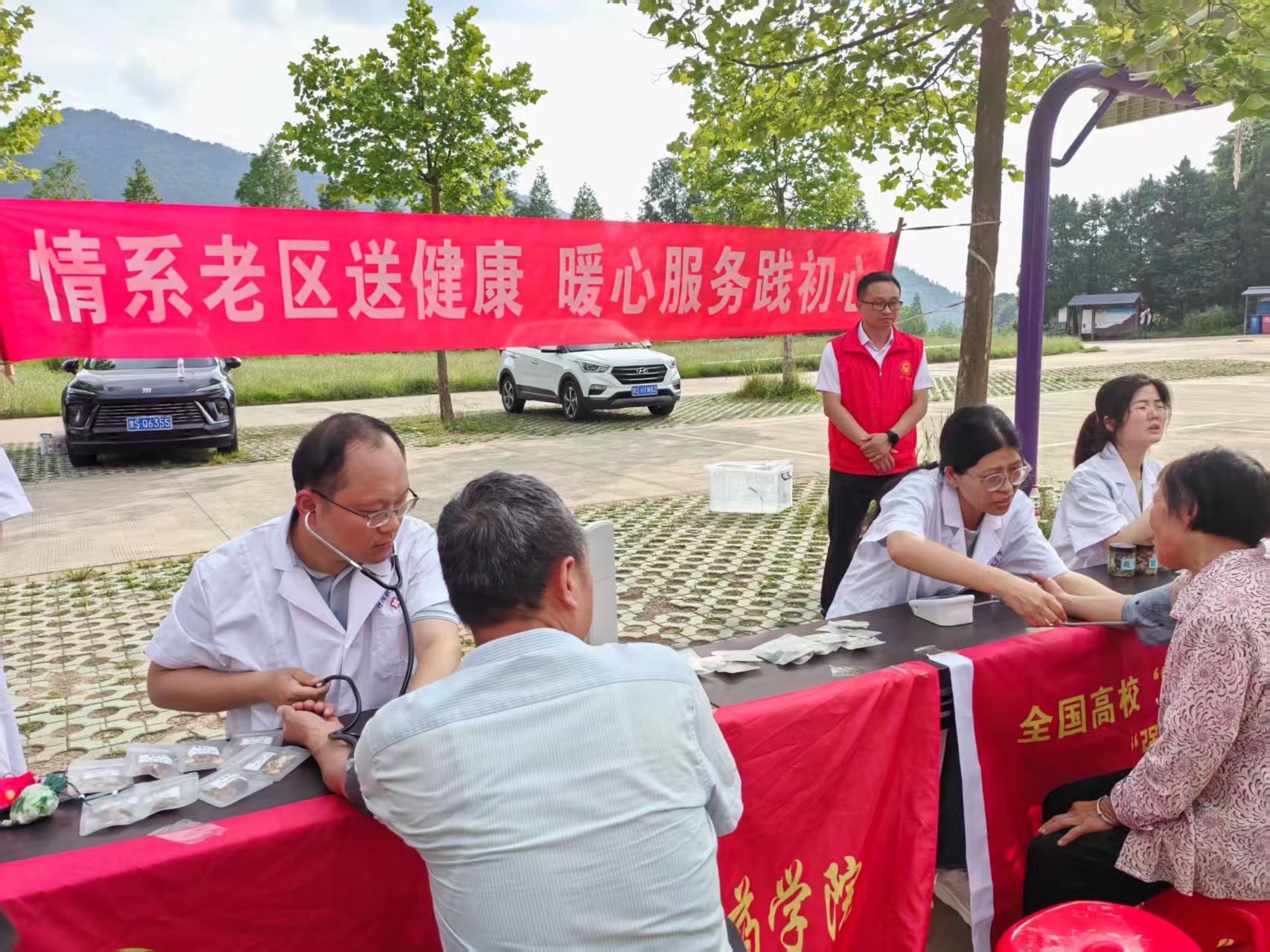 为践行大别山精神、推动中医药文化传播,服务革命老区群众,beat365官方网站“双带人头”教师党支部书记“强国行”专项行动团队于近日走进大别山老区----信阳市商城县黄柏山百战坪小学及林场新村,以“情系老区送健康 暖心服务践初心”为主题,通过开展“知识科普、实践体验、健康惠民”三项中医药文化宣传与志愿服务活动,惠及老区儿童与居民百余人。