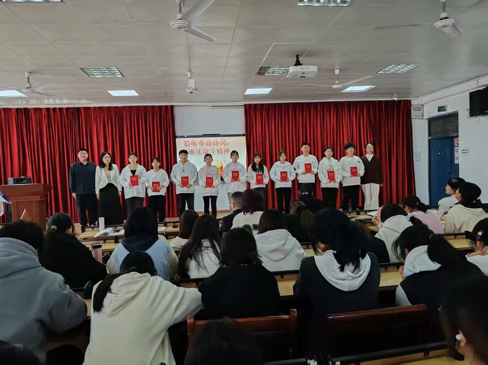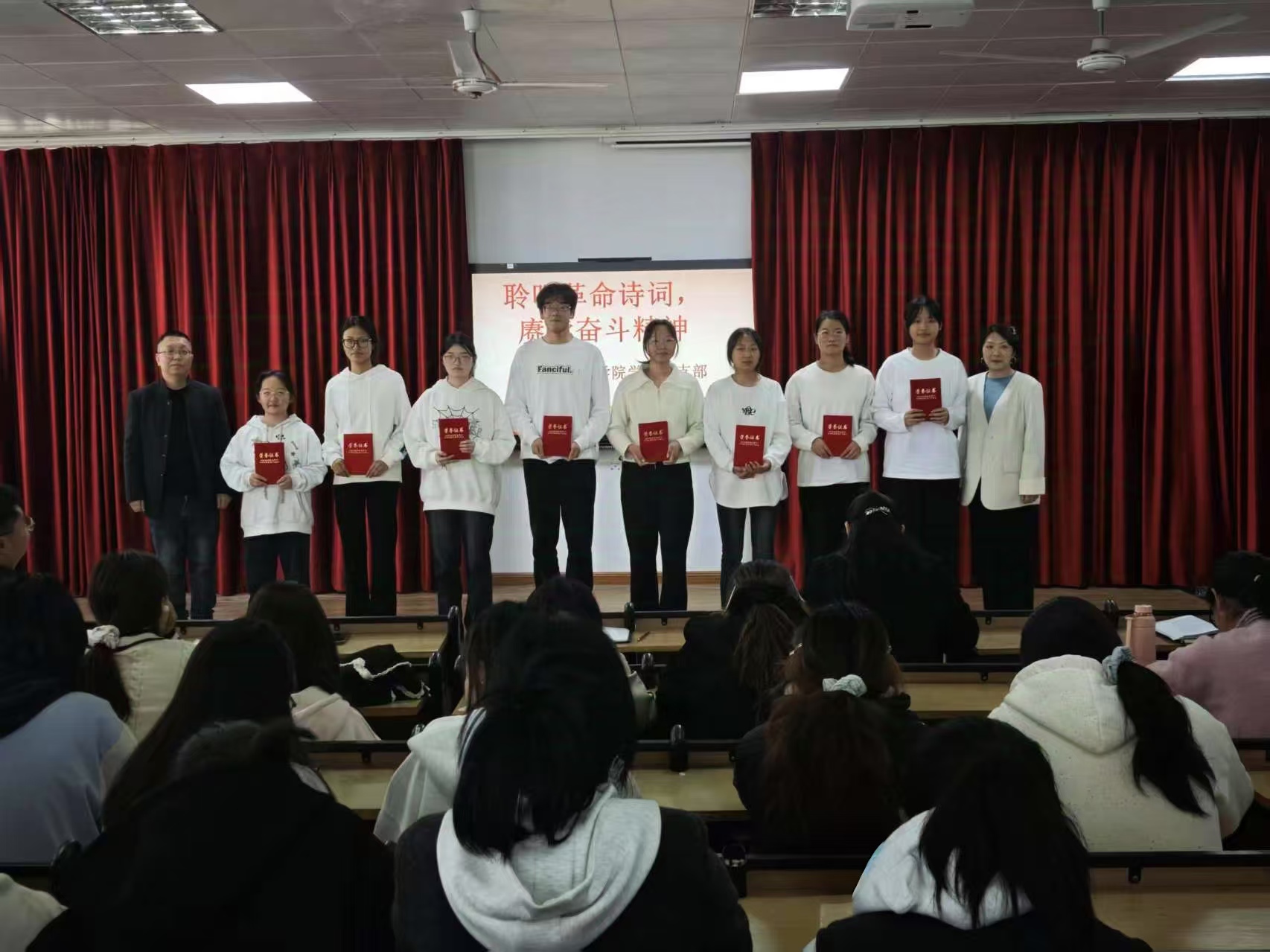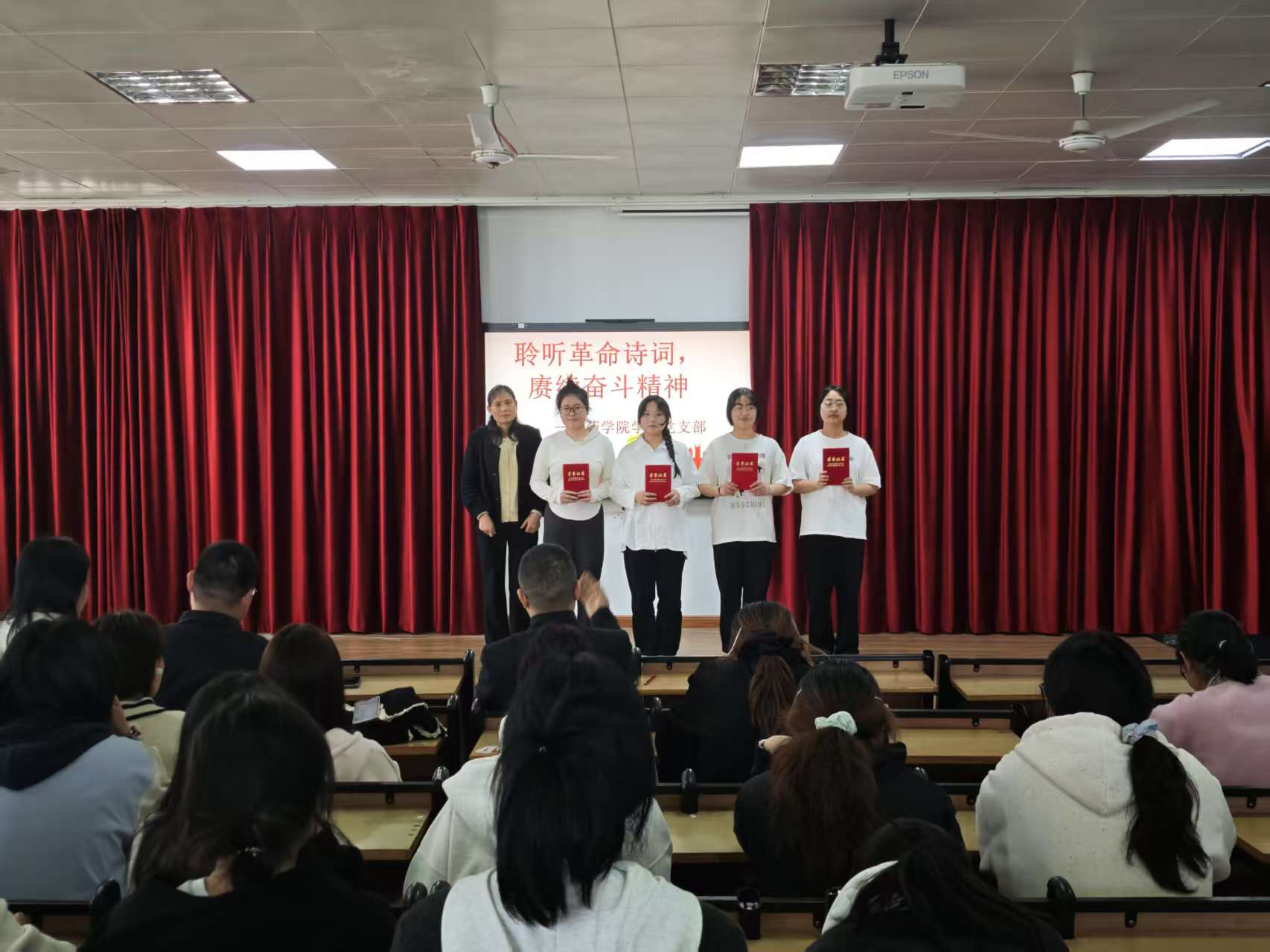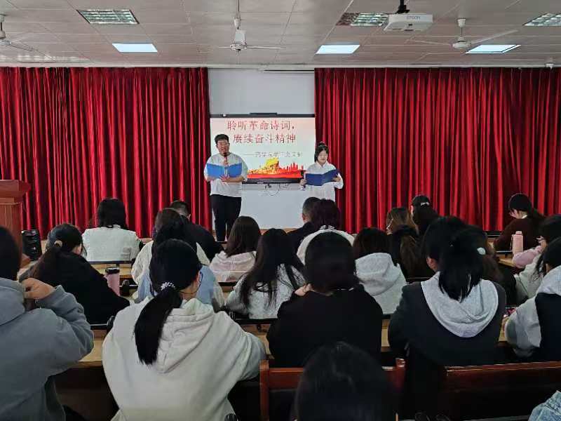 2025年4月1日,beat365官方网站学工党支部在8401多媒体教室举办“聆听革命诗词,赓续奋斗精神”主题朗诵比赛,以红色经典浸润青年心灵,用诗意传承激活奋进力量。