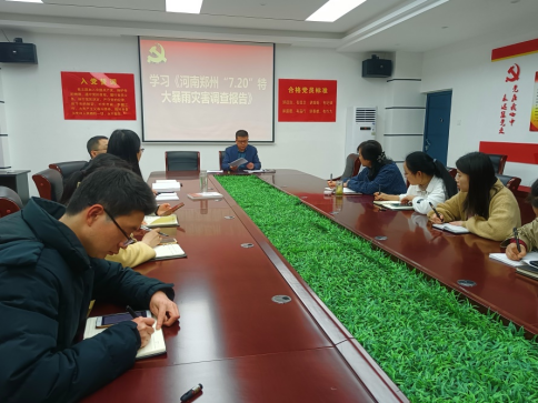 首先党总支书记陈超领学了习近平总书记关于应急管理重要论述和《河南郑州“7.20”特大暴雨灾害调查报告》。