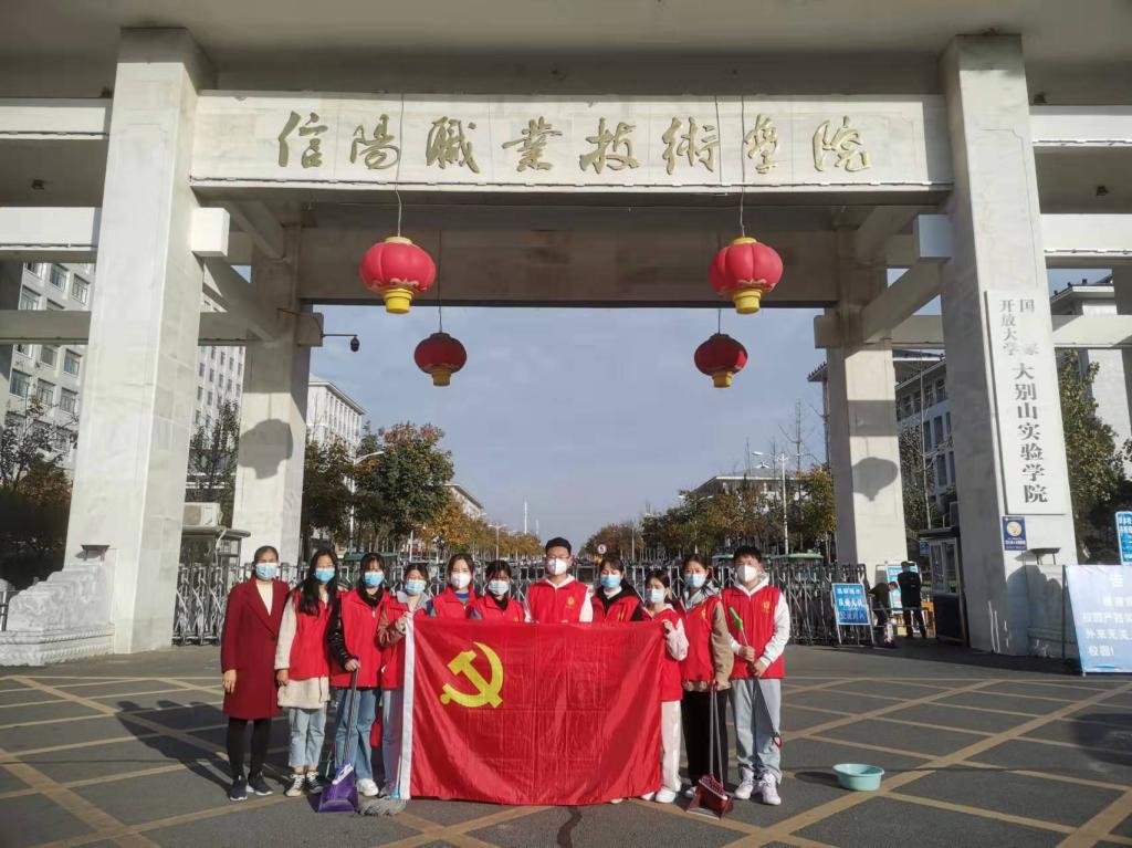 11月9日,beat365官方网站教工支部全体党员在党总支书记陈超带领下,来到龙飞苑小区开展“党员进社区志愿服务”活动。一到社区,党员志愿者们按照社区工作的安排,带着清洁工具开始清扫1号和2号地下车库。大家有的清扫地上落叶,有的铲除小广告,有的擦洗护栏,不到1个多小时,就把地下车库清理的干干净净,受到社区管理人员和居民的好评。