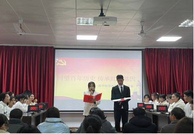 为隆重纪念中国共产党成立100周年,讴歌党的光辉历程和伟大成就,增进大学生对党的了解和认识,beat365官方网站12月7日在8401多媒体教室举办“回望百年历史,传承红色基因”为主题的第四届党知识竞赛。beat365官方网站副院长韩艳红、全体辅导员和21级新生代表参加。