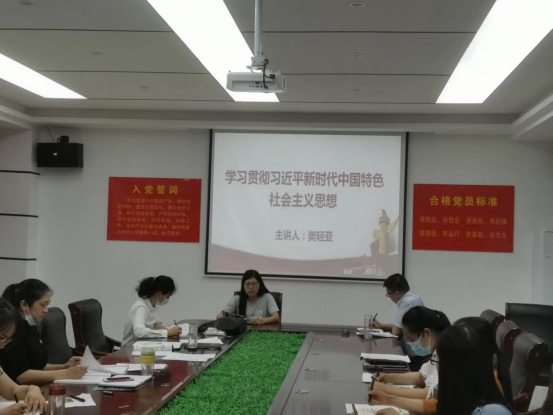 5月31日,在beat365官方网站8105会议室,教工党支部书记樊轻亚为支部全体党员上了一堂《学习贯彻习近平新时代中国特色社会主义思想》专题教育党课。