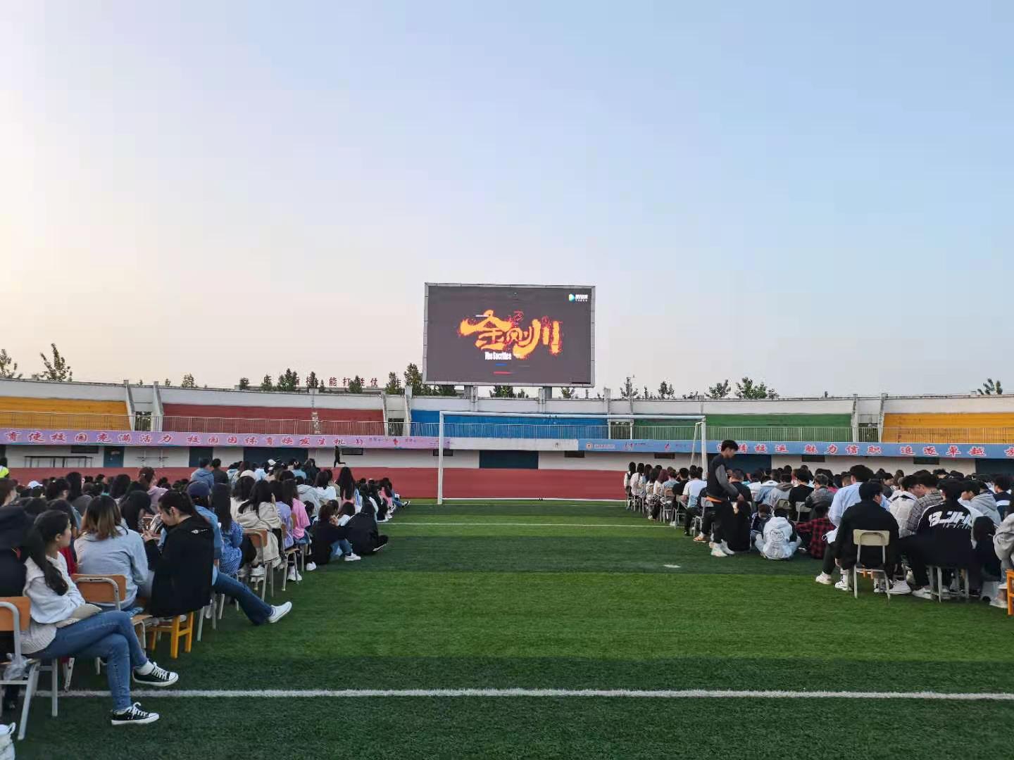 按照学校党史学习教育领导小组的安排部署,beat365官方网站在开展党史学习教育中,采取多种方式方法,教育引导广大师生深刻铭记中国共产党百年奋斗历程,深刻认识中国共产党为党和民族作出的伟大贡献,深刻感悟中国共产党始终不渝为人民的初心使命。4月27日晚,beat365官方网站组织开展了“百部电影”进课堂活动,组织全体师生在体育场集体观看爱国影片《金刚川》。