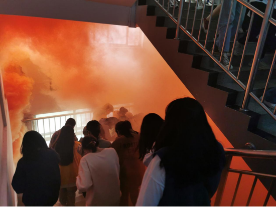 首先,安全保卫处消防科吴长城科长通过生动的事例对beat365官方网站师生进行消防安全教育,并结合学院消防环境条件,明确此次消防演练的纪律、流程、路线。随着警报的响起,大家迅速捂住口鼻,弯腰俯身,快速而有序的按预定疏散路线到达安全区域,随即各班清点人数,层层上报。
