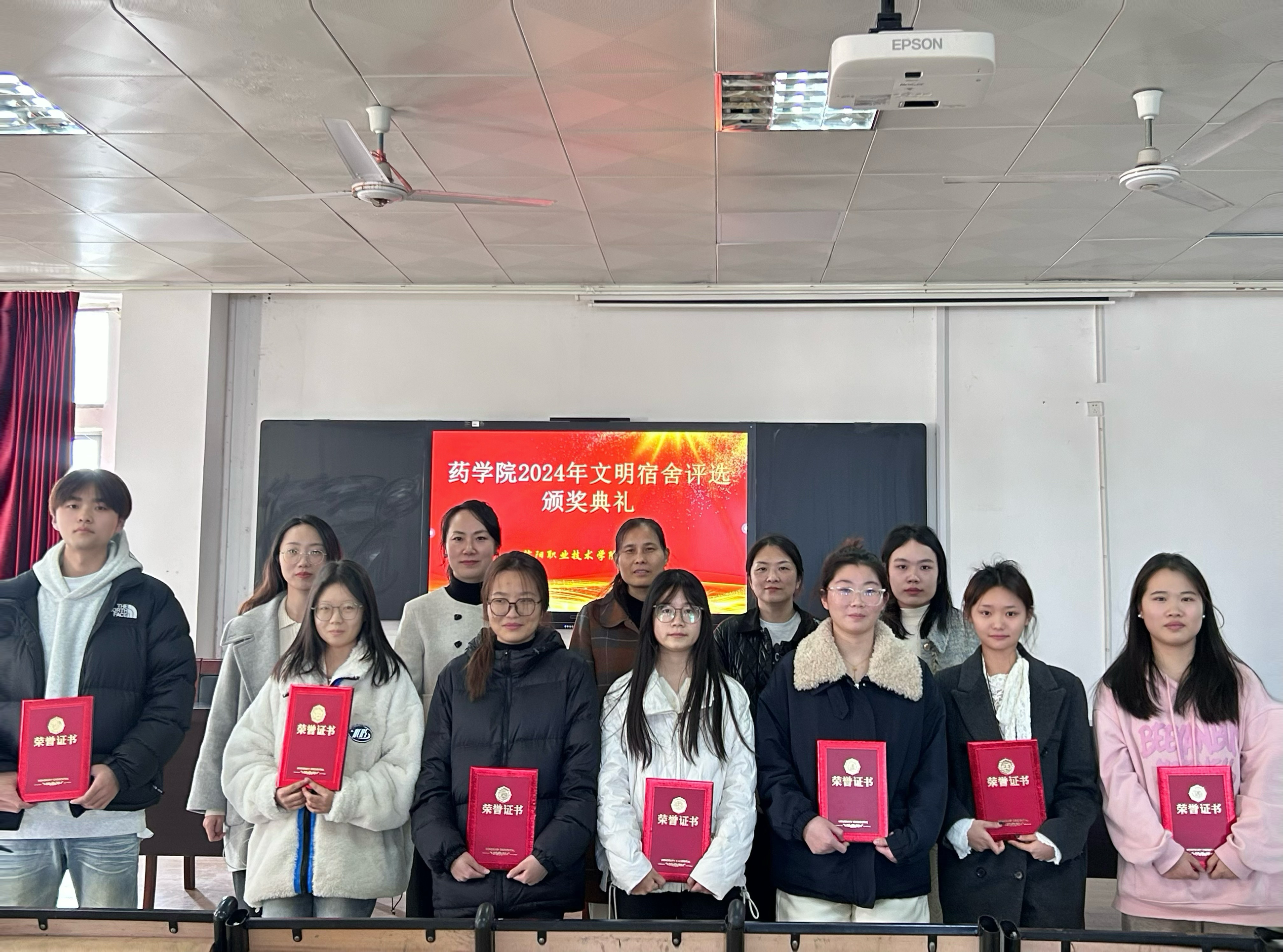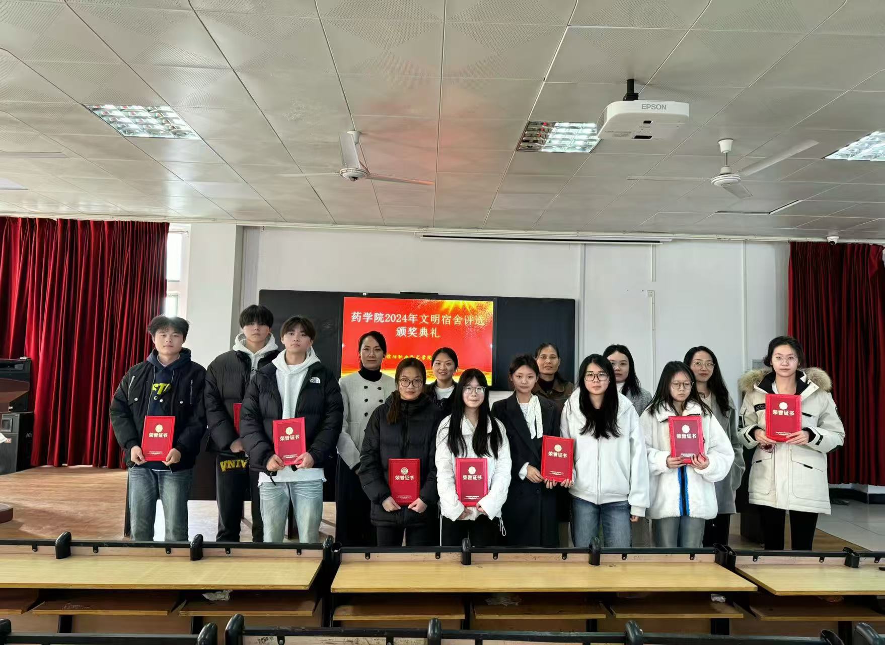 颁奖仪式上,学工办主任刘庆馨宣读了获得“文明宿舍”“先进个人”荣誉称号名单。接着,获奖宿舍代表依次上台领奖,他们手捧荣誉证书,脸上洋溢着自豪与喜悦。