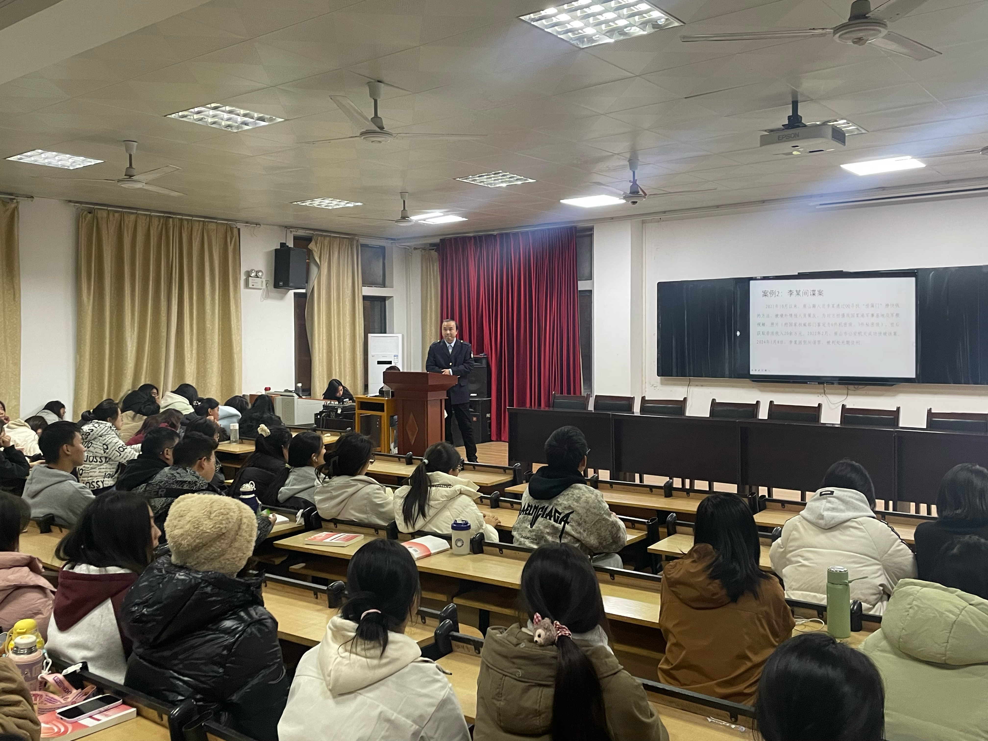 在讲座中,卢科长首先为大家讲解了国家安全、消防安全、交通安全、网络安全等方面知识,让同学们了解安全的狭义和广义的含义、重要性以及如何维护国家安全和自身安全。