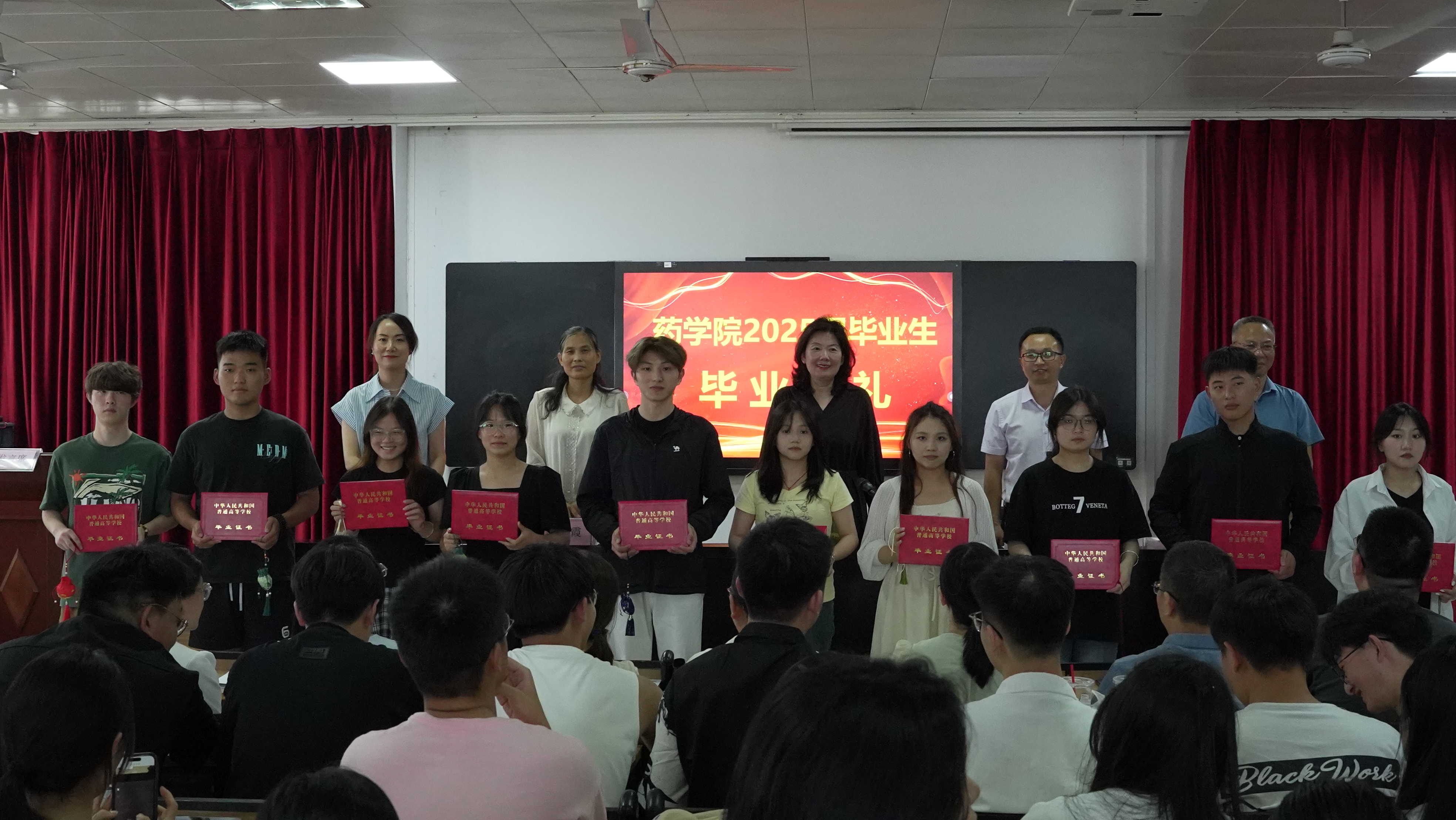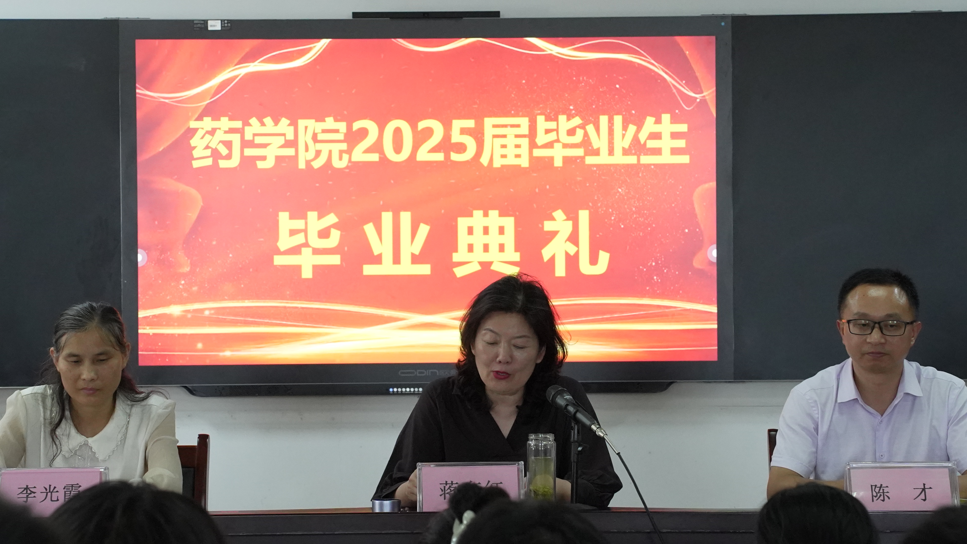 最后,学校党委委员、纪委书记蒋有红向beat365官方网站2025届顺利毕业的学子们深情寄语:一是志存高远,心怀国家。希望同学们把个人理想融入国家发展大局,以医药人的担当,为药学事业的传承贡献力量;二是终身学习,追求卓越。鼓励大家在知识快速更新的时代,始终保持学习热情,深耕专业领域,不断突破自我;三是修身立德,诚信友善。强调把中华传统美德的火种代代相传,把社会主义核心价值观落实到行动之中;四是勇于创新,敢于担当。激励毕业生们在医药行业变革浪潮中,大胆探索,积极创新,勇挑时代赋予的重任。