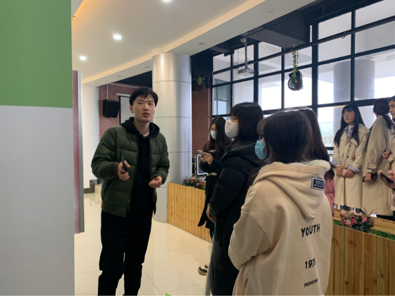 涂老师首先在入口处给所有参观的同学们讲解了大学生创业孵化园的基本功能,总体布局及项目入驻情况。接着,涂老师带领同学们参观了苗圃区、孵化南区、孵化北区、电商区,并介绍了在孵企业的基本情况,讲解了大学生创业的优惠政策,使同学们充分了解国家对于大学生创业的扶持力度。