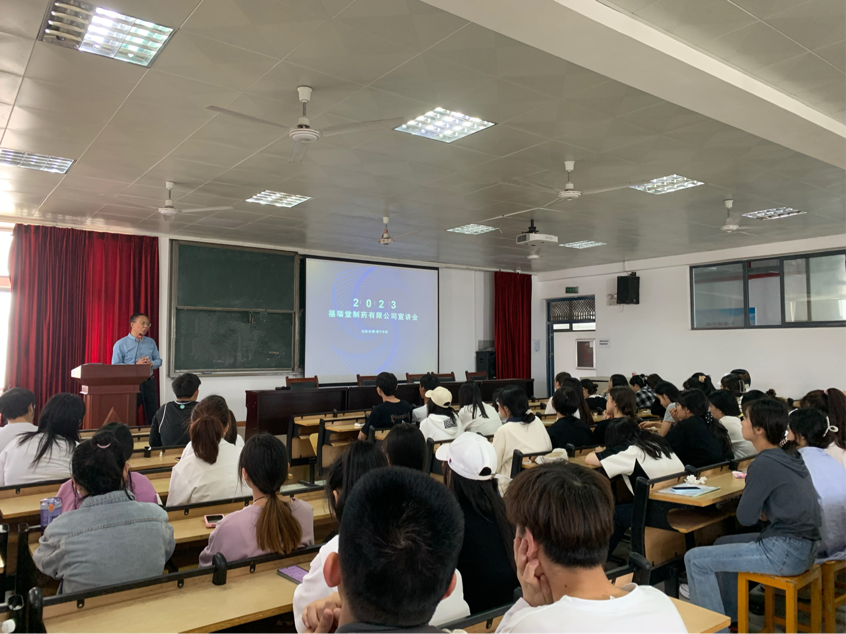 为了切实推进beat365官方网站2023届毕业生就业工作,拓宽就业渠道,确保毕业生高质量就业,2023年4月16日下午,beat365官方网站于8401多媒体教室举办了福瑞堂制药有限公司春季专场招聘会。beat365官方网站副院长许卫军,毕业班辅导员以及80余名求职学子参加宣讲会。
