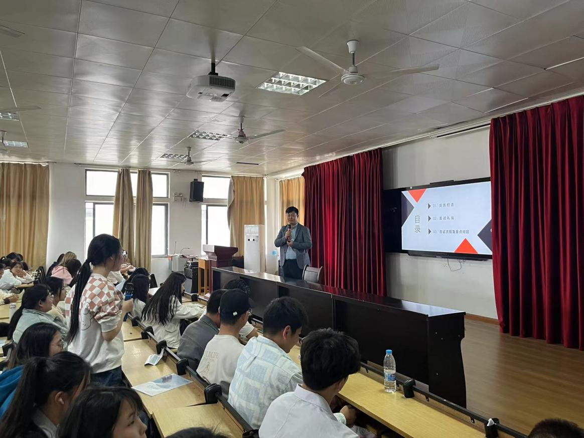 会后,冯经理对有意向的同学进行了现场面试。本次宣讲会共有10名同学投递了简历,并在会后与用人单位进行了沟通和面试,冯经理从面试类型及技巧、面试注意事项、面试礼仪等方面为同学们详细解答了面试中的常见问题。他指出,面试者必须学会洞悉面试官所设问题背后的真实目的,清楚考核的标准,避免作答表面化,才能从容地应对各种面试场景。