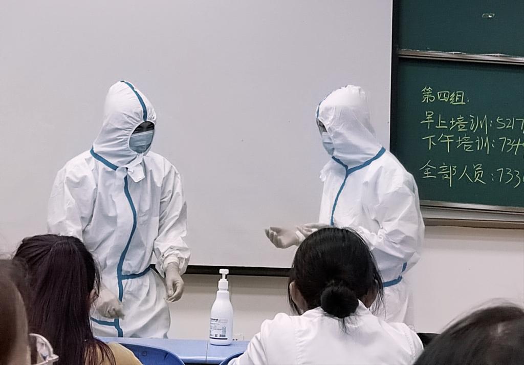 药学系学生参加穿脱防护服培训考核