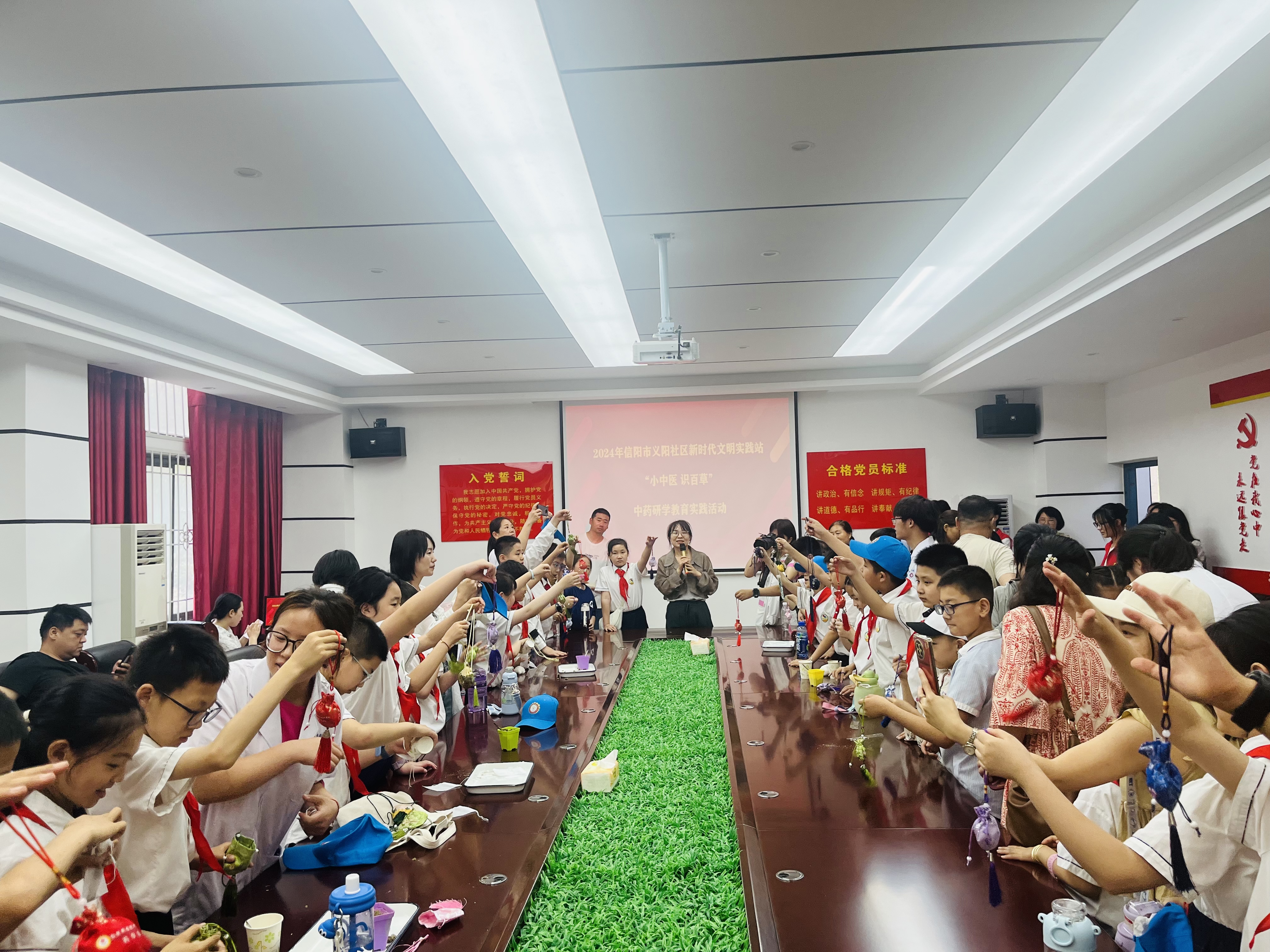 为传承中药文化,感受中药文化魅力,发挥“双带头人”工作室服务地方作用,丰富支部联支部活动形式,6月1日上午,义阳社区党支部组织辖区小学生来到beat365开展以“中药研学教育实践”为主题的研学活动,beat365官方网站党总支副书记李光霞,教工党支部书记、“双带头人”工作室负责人樊轻亚及全体党员参加。