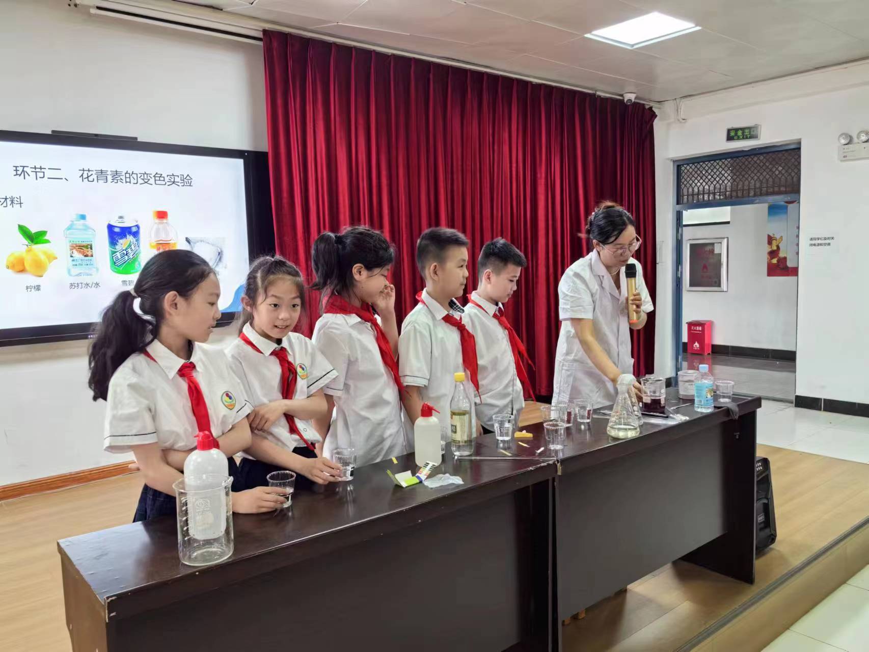 随后,学生们来到8401教室,涂祖月老师以“探秘花青素”为主题开展科普讲堂活动。为了让学生们更直观地了解中药的重要成分之一——花青素,课堂上,学生们通过亲自实验的方式观察花青素在不同环境下的颜色变化,深切感受到了中药的神奇与魅力。科普课堂结束后,beat365官方网站社团进行了汉服走秀与中药标本展示,现场气氛热烈,展现了传统文化与中药文化的完美交融,深受现场小学生们的喜爱。