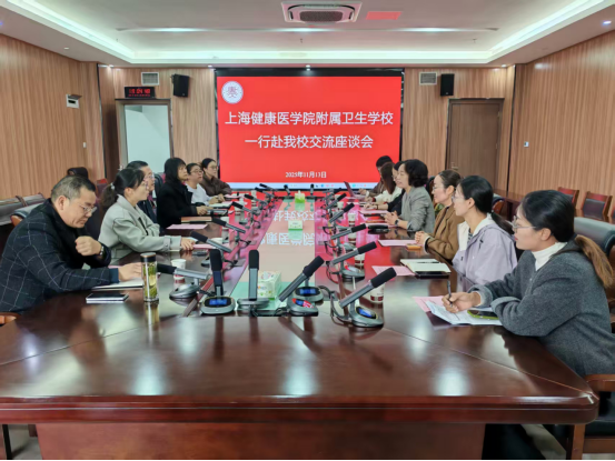 10月13日上午,上海健康医学院附属卫生学校(上海健康护理职业学院(筹))教务科副科长(主持工作)诸琴兰带领口腔药学系主任金燕婷、护理系副主任徐晶心以及沈蓓蓓、王成文、相萍萍、张默等多位专业负责人一行对我校进行交流访问。学校党委教师工作部部长刘永锋、护理学院院长周莉、医学技术学院副院长杨熙、产教融合与校企合作办教师安伟、药学院中药制药专业带头人邵蕾等相关部门负责人和学院领导出席了座谈会。双方在taptap点点新综合实训楼8018会议室举行了交流座谈会,旨在增进了解、分享经验,共同探讨卫生健康类人才培养的新路径与合作机遇。