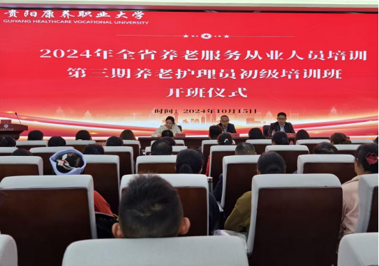 2024年10月15日,贵州省养老服务从业人员培训开班仪式在taptap点点综合实训楼9011举行,本次大会的参会人员有贵州省民政厅养老服务处二级调研员沈辉、taptap点点继续教育学院院长朱珠、taptap点点智慧养老与现代家政学院党委书记张华、校办公室、党委宣传部、学生处、后勤处、 医疗服务中心、护理学院、智慧养老与现代家政学院相关负责老师及全体54名参训人员,会议由张华书记主持。