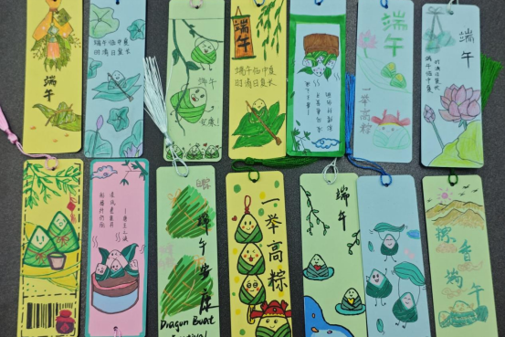 活动伊始,工作人员向同学们详细讲解了端午节的历史渊源与传统习俗。接下来,大家满怀期待地投入到书签制作中。制作过程中,同学们手法娴熟,将五彩丝线灵活地缠绕于书签之上,精心搭配精致图案,并书写温馨祝福语。在一双双巧手下,别具匠心的书签逐一诞生,每一张都彰显着同学们的创意与智慧,承载着对传统文化的热爱与传承的决心。完成制作后,同学们纷纷展示作品,热烈交流创作心得,现场气氛活跃,节日氛围浓厚。