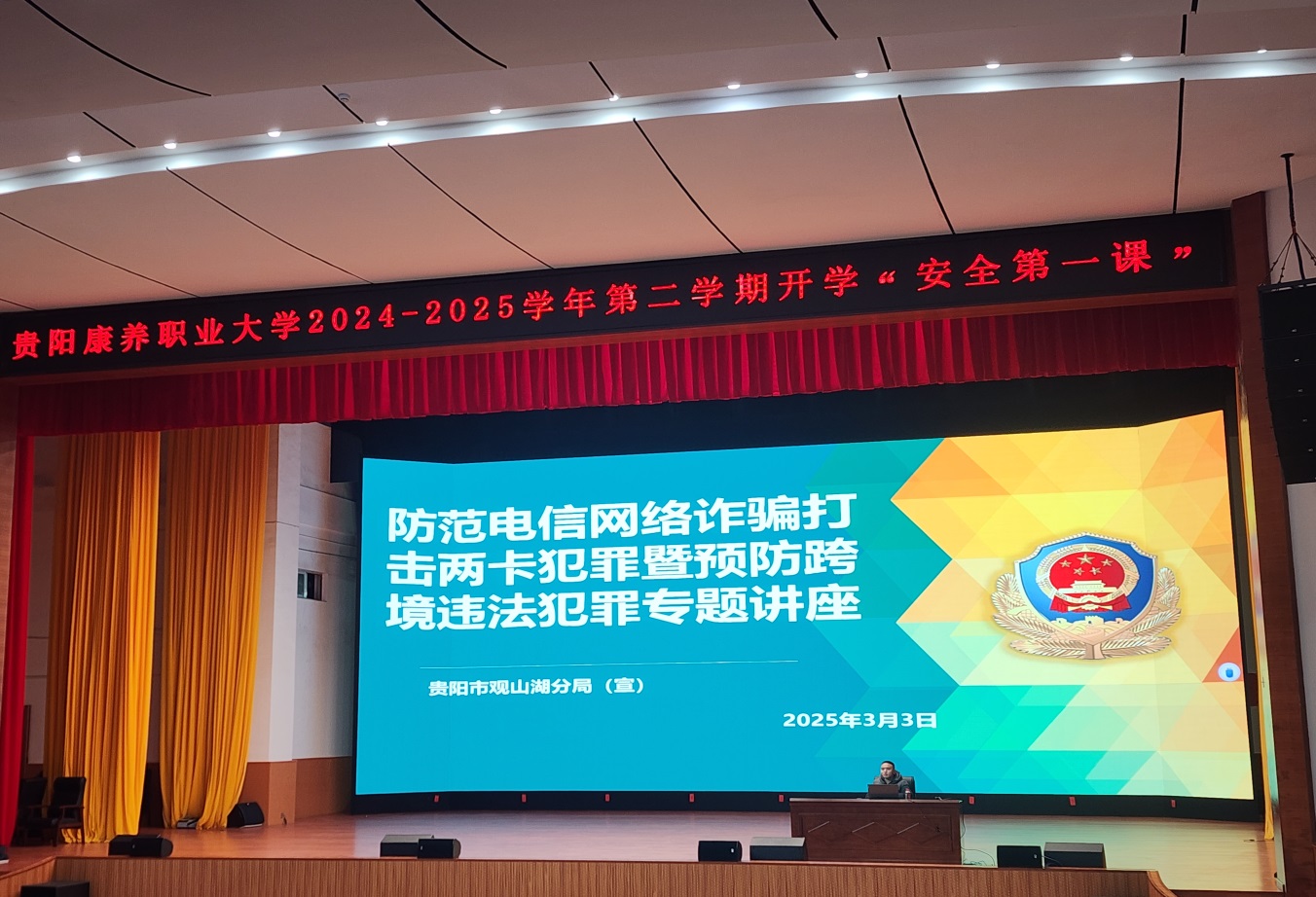 防骗在心,安全同行。3月3日至3月15日,党委保卫部(保卫处)联合党委学生工作部(学生工作处)在学校大礼堂开展“2024-2025学年第二学期开学安全第一课”主题活动。为此,邀请观山湖区公安分局宾阳派出所出入境分局民警为全校8000余名同学讲授了8场精彩的讲座。