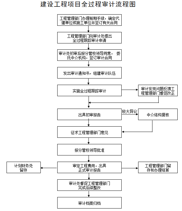 (一)审计计划。工程管理部门每年3月底之前向审计处报送年度基本建设工程计划和修缮工程计划。审计处根据工程项目计划制定年度建设工程审计计划。