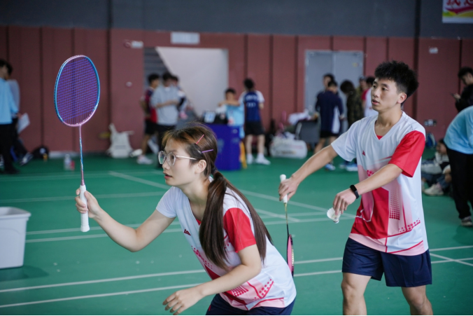 据悉,本次比赛共有来自全省48所高校、1172名运动员参加。赛场上,我校参赛12名学生和各位老师们全神贯注,高远球似箭、杀球有力、吊球巧妙,展现出精湛的技艺。步伐快速灵活,每一次移动都彰显着平时训练的功底。比赛过程激烈精彩,双打项目中队友间配合默契,通过眼神和手势迅速交流,补位及时。男单女单的竞争更是白热化,多局比分紧咬。这次比赛不仅是对选手们实力的考验,也促进了贵州省高校间的体育交流,为校园羽毛球运动发展注入新活力。
