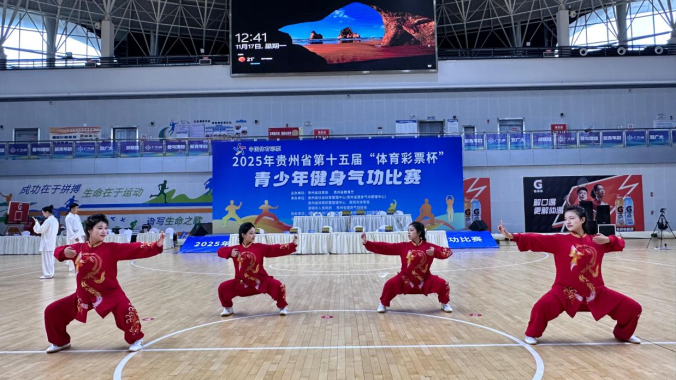 在刚刚落幕的2025年贵州省第十五届“体育彩票杯”青少年健身气功比赛中,我校代表队发挥出色,凭借稳定而优异的表现,共斩获冠军两项、季军四项、第四名一项、第五名一项、第六名一项、第七名一项、第八名一项,并荣获团体总分第二名,在全省43所高校中脱颖而出,充分展示了我校在公共体育教学改革与康养特色融合育人方面的扎实成效。