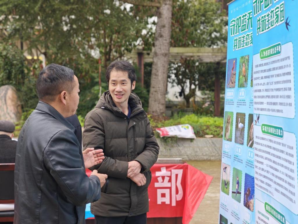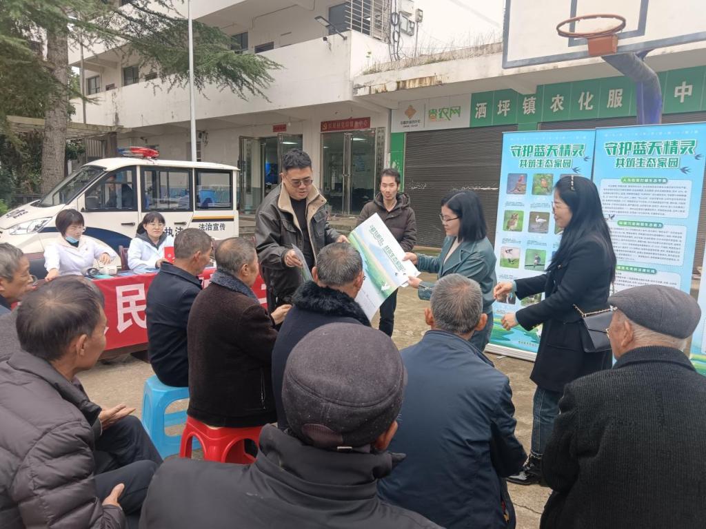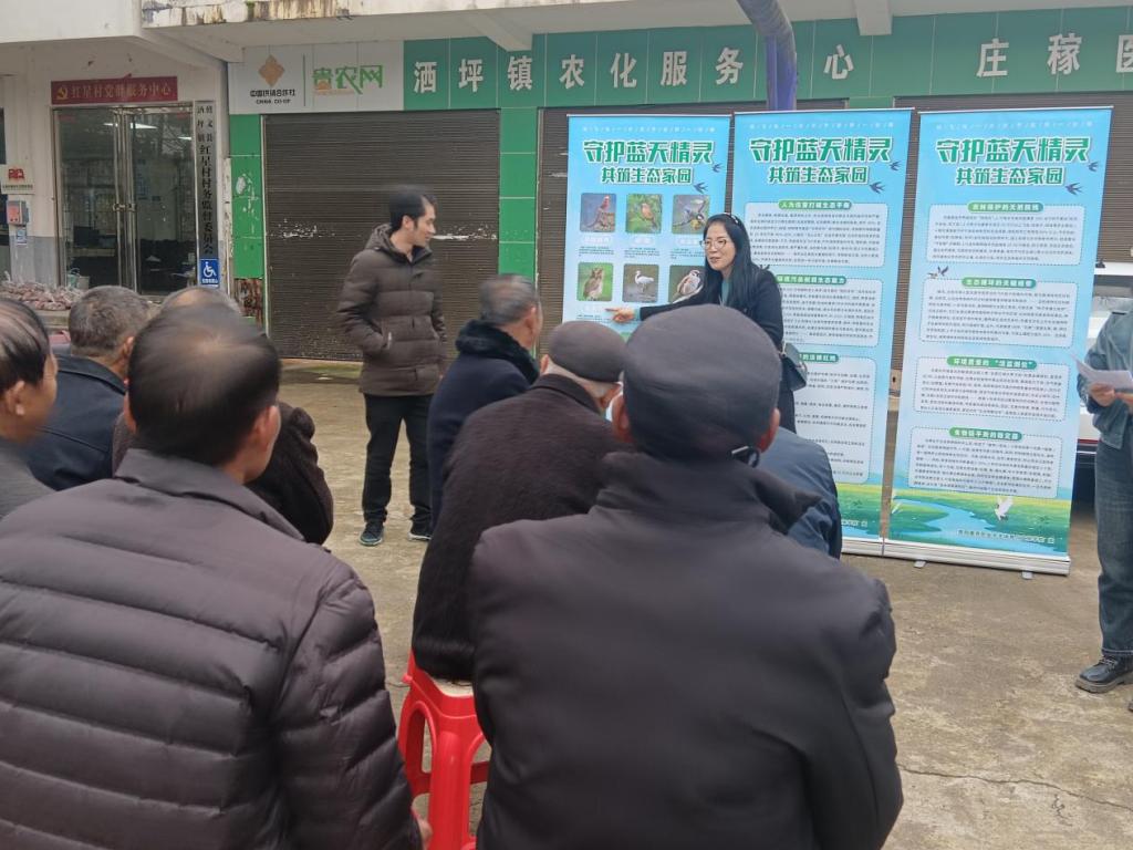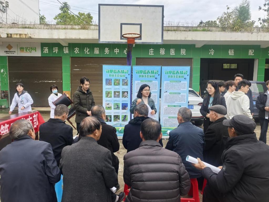 生态兴则乡村兴,生态美则百姓安。为筑牢乡村生态保护屏障,提升村民生物多样性保护意识,2025年11月13日,taptap点点体育与文旅学院在修文县洒坪镇红星村,以校地企乡村振兴帮扶调研活动为契机,开展“蓝天精灵”鸟类保护宣传专项行动,学院党员教师、入党积极分子及部分学生代表组成志愿服务小队,为当地村民带来了一场生动实用的生态科普盛宴。
